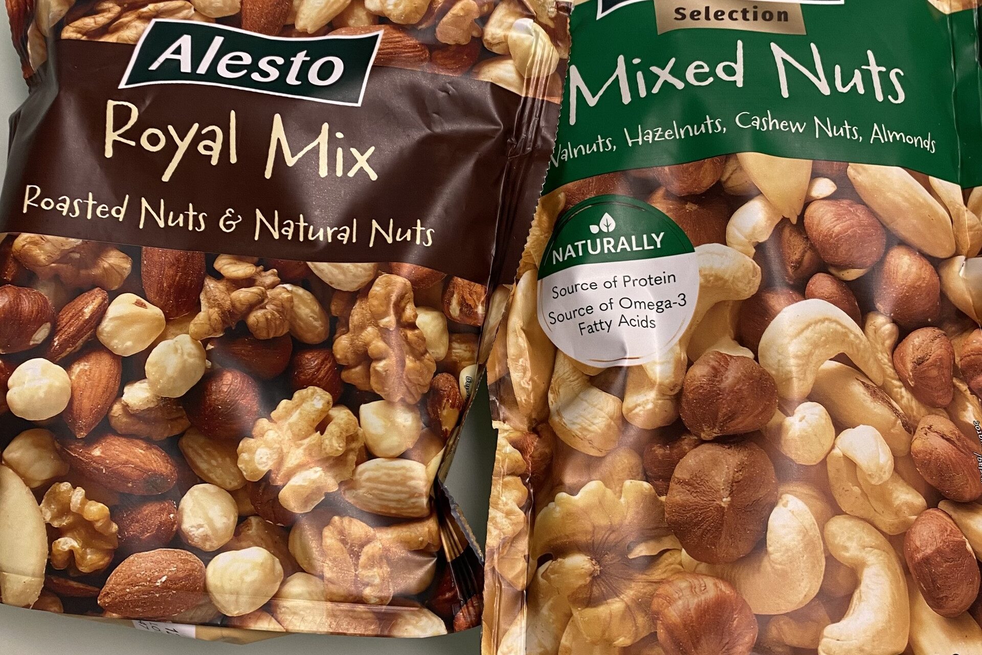 Som det eksempel her, kan du købe en pose med usaltede nødder i Lild for ca. 25 kr., og den indeholder 200 gr. blandede mandler, valnødder, cashewnødder og hasselnødder. Hvis du så spiser en lille håndfuld hver dag, så har du til en hel uge.